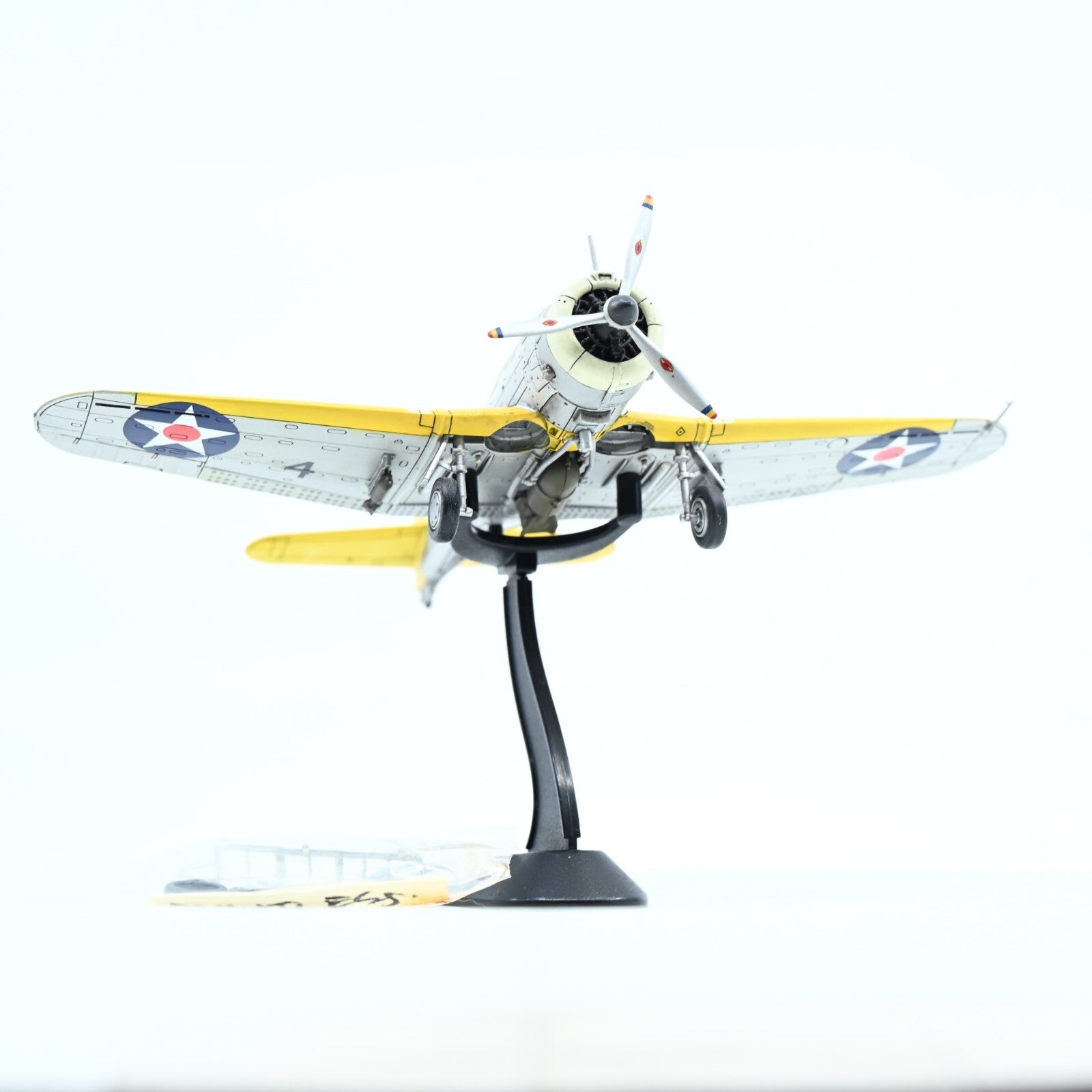 The bottom of the internal plastic packaging has been modified by the previous owner so the aircraft is able to sit within the packaging with all bombs attached and the landing gear out.