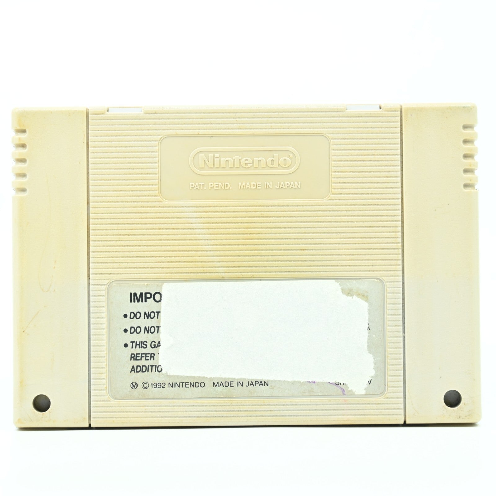 Yellowing on the back of the cartridge and label has been torn.